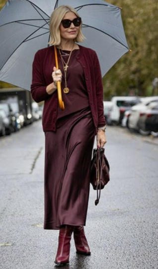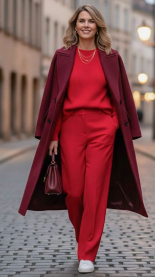 Vermelho Cereja ou Merlot – Iluminam qualquer produção porque são intensas. Você vai encontrar variações do cereja profundo até os tons mais próximos do vinho, dai o termo Merlot. Ambos com tons profundos que trazem uma sensualidade madura, sofisticação e confiança. Aposte em acessórios ou em um look monocromático para alongar a silhueta.