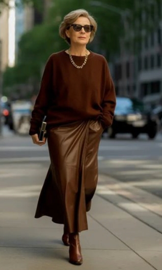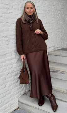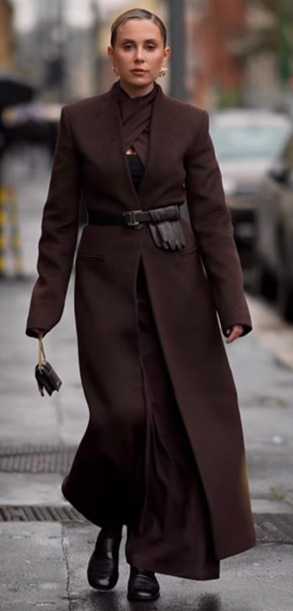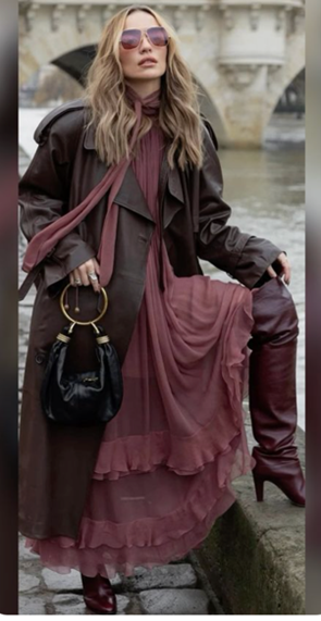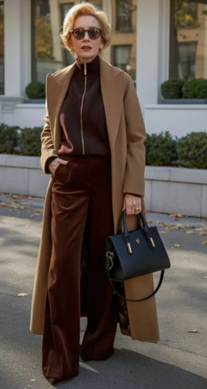 Marrom Chocolate ou “cocoa powder” – Elegância discreta. Fácil de combinar. Um tom de marrom que estará presente nas vitrines em casacos, conjuntos em alfaiataria, calças, blusas, sapatos e botas. Extremamente elegante. Atemporal.