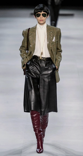 Alfaiataria – Continuará muito forte, com destaque para as Calças de corte reto ou wide leg com peças mais ajustadas na parte de cima, Blazers e jaquetas oversized mas com os ombros no lugar e Bermudas longas abaixo do joelho com botas de cano alto joelho, que pode ser usada com bota de cano alto com a bermuda longa.