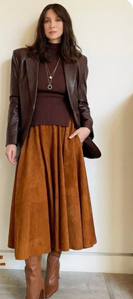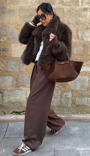 Veludo e Suede – Ambos voltam a brilhar nesta estação pela proteção térmica e elegância aos looks com uma diversidade de peças. O veludo traz um brilho para a noite e o suede (camurça sintética) é a cara do dia a dia no Outono-Inverno 2026 tanto em peças como acessórios.