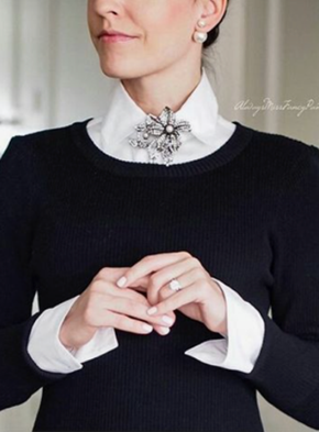 Broches – nas blusas você pode colocar nas golas, no peito, nos punhos. Fehar echarpes ou camisas. Use a sua imaginação. Se não tiver broche, pode usar um brinco grande como se fosse um broche, fixando com a “tarrachinha”.