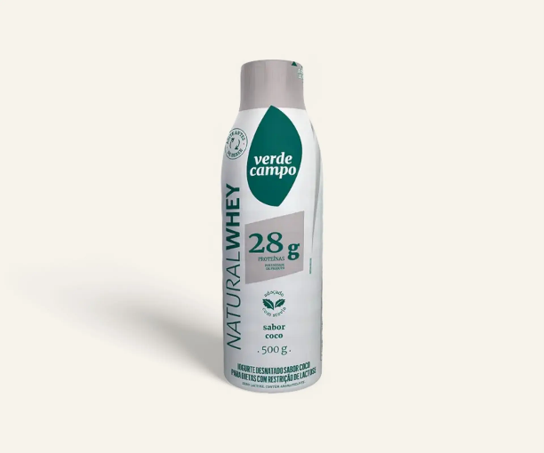 Outra recomendação é a Natural Whey, da Verde Campo, com 28g de proteína. Desnatado e sem lactose.
