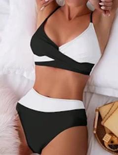 - Biquini de cintura alta – também chamado de Hot Pants, esse modelo é o grande destaque do Verão 2025. Excelente para mulheres maduras que querem alinhar a silhueta e disfarçar a barriguinha e o quadril. Perfeito para te deixar segura e curtir a praia e a piscina à vontade.